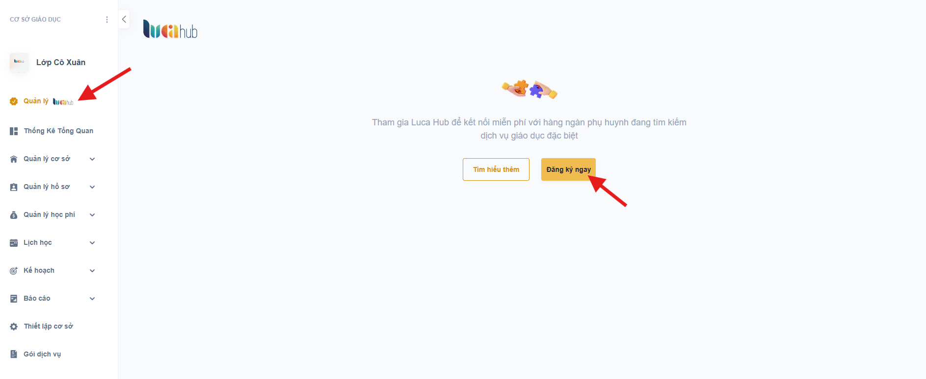 Nếu chưa từng sử dụng Luca, bạn sẽ nhận được lời mời kích hoạt tài khoản [**Luca Education**](https://app.luca.education/) (phần mềm quản lý trung tâm giáo dục đặc biệt) sau khi hồ sơ Luca Hub của bạn được duyệt.&#x20;