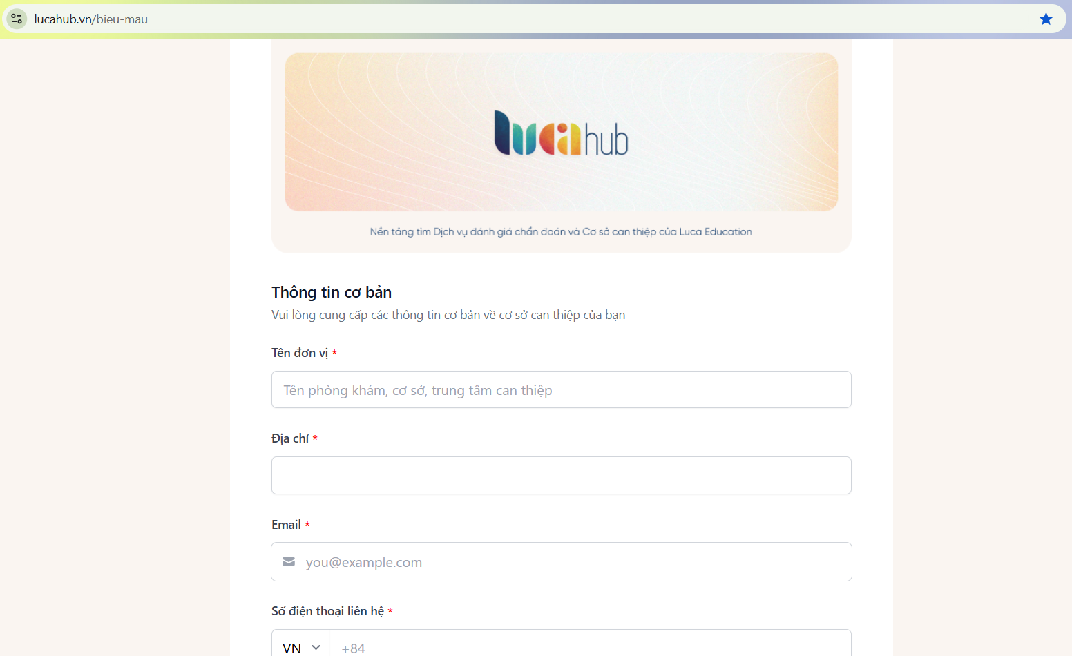 * Nếu chưa có tài khoản Luca, vui lòng bấm vào link sau <https://lucahub.vn/bieu-mau>